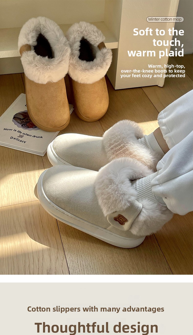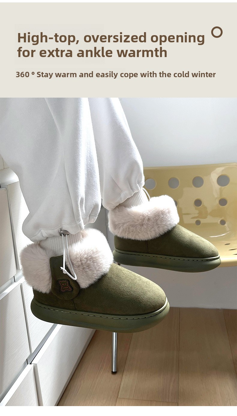 Thick Comfort Design: High-top boots with round toe, flat heel (3-4 cm height), and thickened insulation for cozy wear.