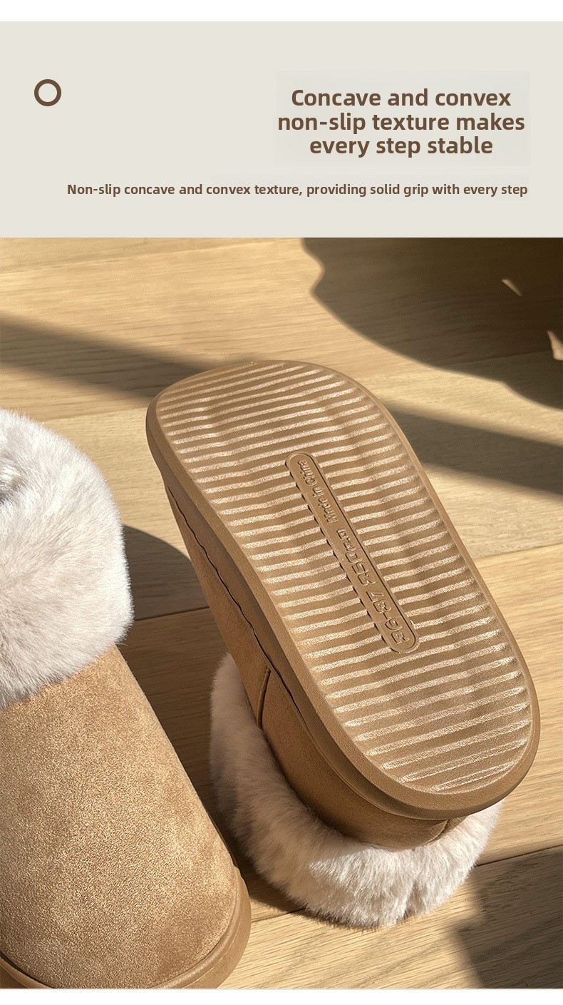 Warm Fleece Lining: Features artificial wool interior and fluff insole for enhanced warmth in cold weather.